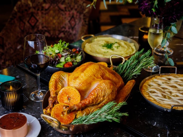 Gather the family for an elegant, family-style dinner complete with all the trimmings. Vegan, vegetarian, and child menus are available. Enjoy the festive decor and twinkling trees at the entrance.